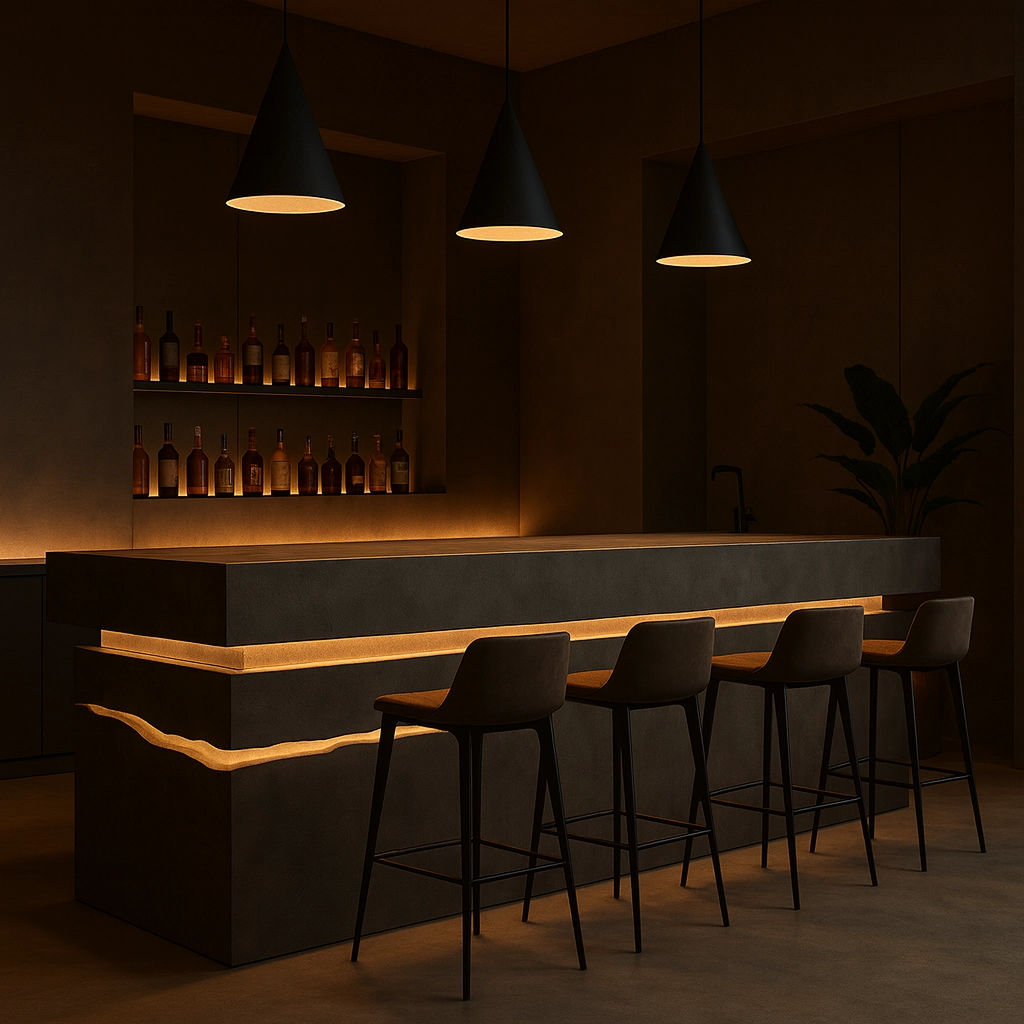 Створюємо барні стійки для HoReCa та домашніх кухонь: стійкі до вологи поверхні, місця для техніки та посуду.